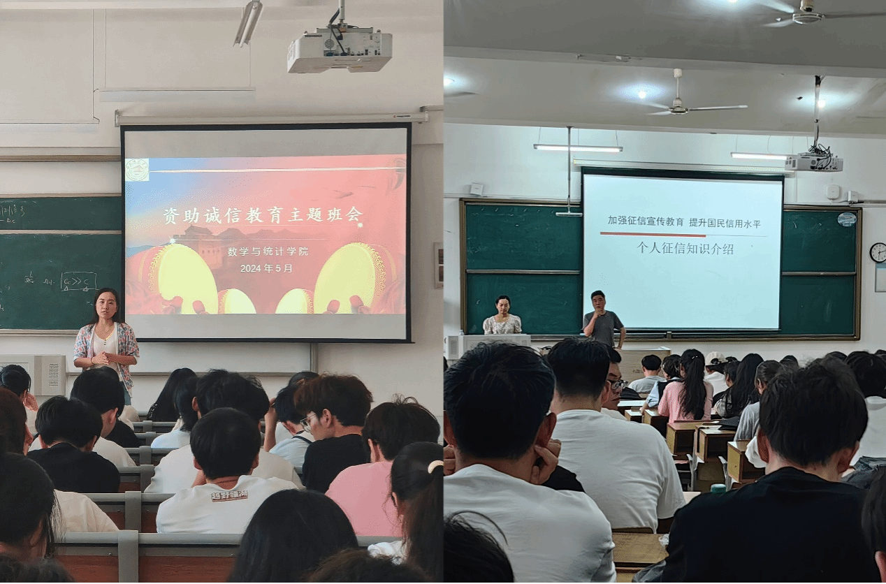 各年级辅导员认真备课,积极开展以“资助诚信教育”为主题的班会,他们将员工资助工作与思想政治教育工作相结合,陆续在各班开展诚信教育主题班会。非毕业班结合案例和视频等,重点开展诚信感恩教育,预防诈骗、远离不良贷套路警示教育,促使员工增强规矩意识和分辨能力,树立诚信观念,争做讲诚信、懂感恩、知担当的人。对于毕业班,5月26日,数学与统计学公司召开毕业班大会,重点开展诚信还贷、诚信就业等教育,通过《人行个人征信知识介绍》等宣讲材料,进一步增强员工诚信意识,引导毕业生在就业过程中要主动就业、诚信守约,并提醒有贷款的毕业生按时履约。