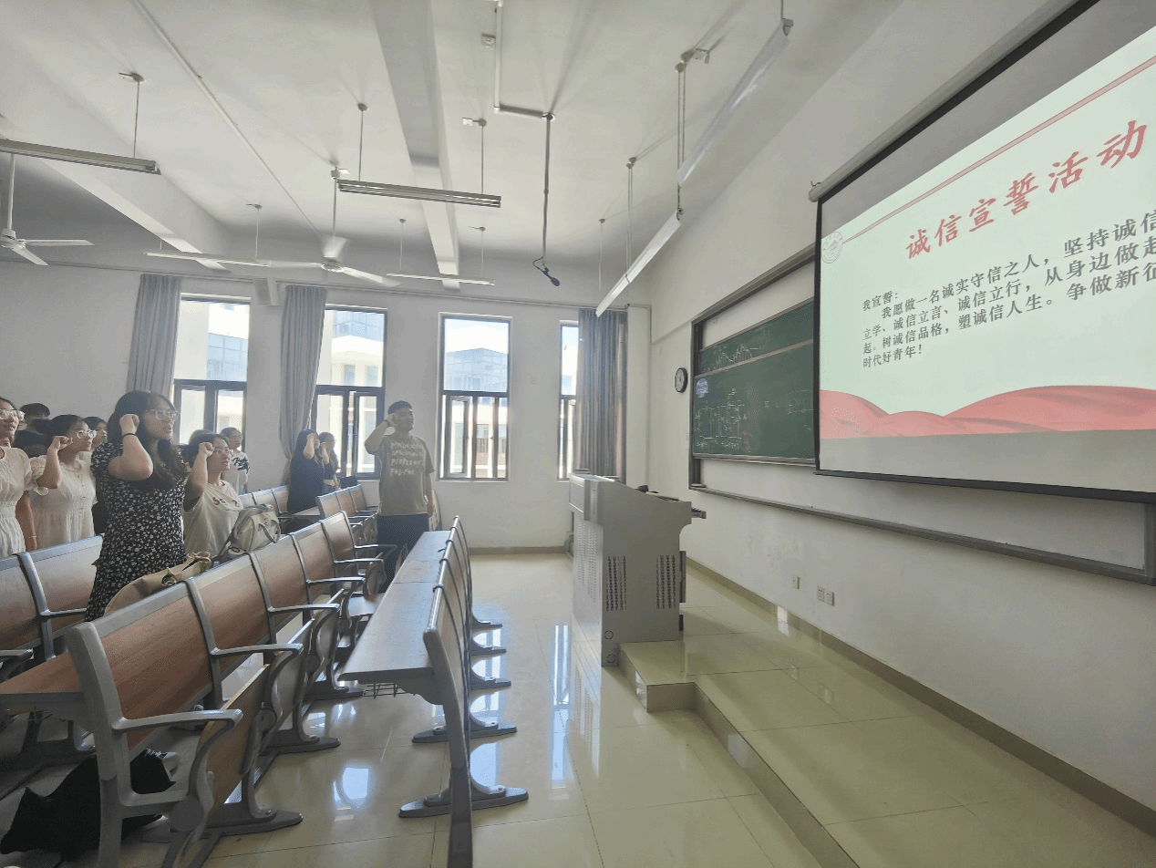 为培养员工树立诚信意识,弘扬诚信美德,太阳成集团122ccvip组织各班级举办了诚信励志宣誓活动。参与活动的全体同学在辅导员或班长的带领下齐声宣读诚信誓词。宣读誓词过程中,同学们表情庄重,宣誓声富有激情,展示出公司学子对诚信意识培养的重视和对营造守信良好环境的决心。