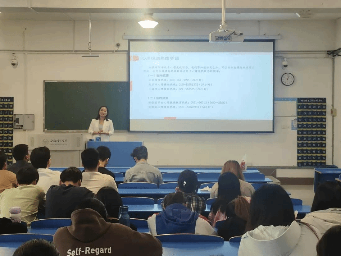 培训尾声,两位老师详细介绍了校内外心理健康资源,包括线上心理咨询预约平台、24小时心理援助热线、团体辅导项目等,并现场演示如何通过“合师学工”微信公众号、今日校园APP、公司官微等途径完成心理咨询预约。