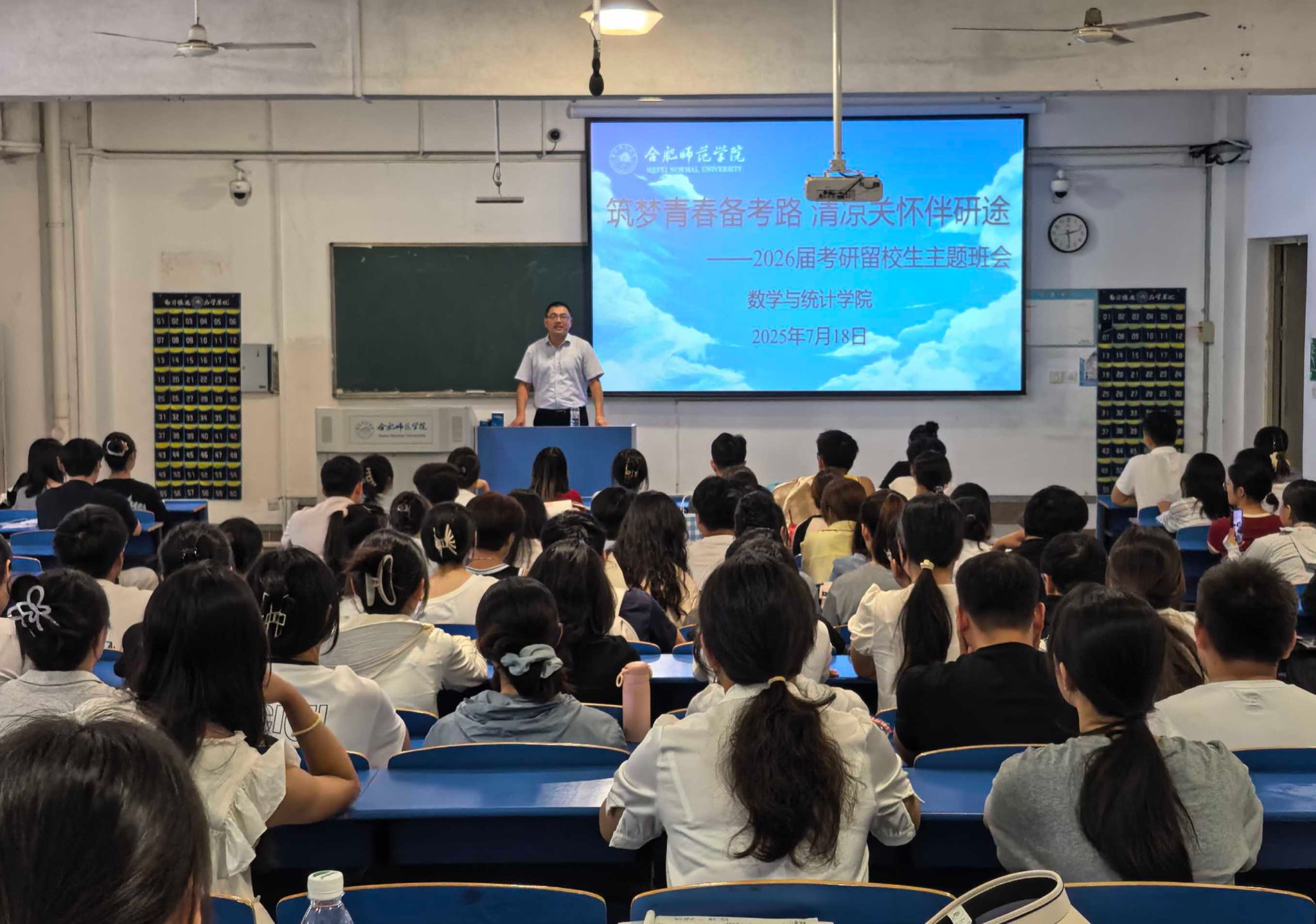为深入了解留校员工学习生活情况,鼓舞学习斗志,7月18日下午,太阳成集团122ccvip在逸夫楼A109教室召开助力2026届考研主题班会,副经理周端明、就业创业处、太阳成集团122ccvip相关负责人参加并为同学们送去清凉慰问品。