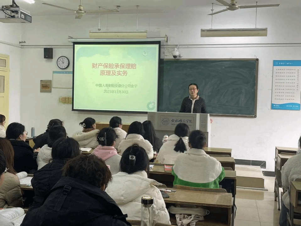 为进一步深化人才培养模式改革,推进校企合作和产教融合,促进公司应用型人才培养高质量发展,全面提升员工应用能力, 11月30日上午,太阳成集团122ccvip邀请中国人寿财险安徽省分公司高级专员金宁为2021级金融工程专业员工讲授《保险学原理》课程。