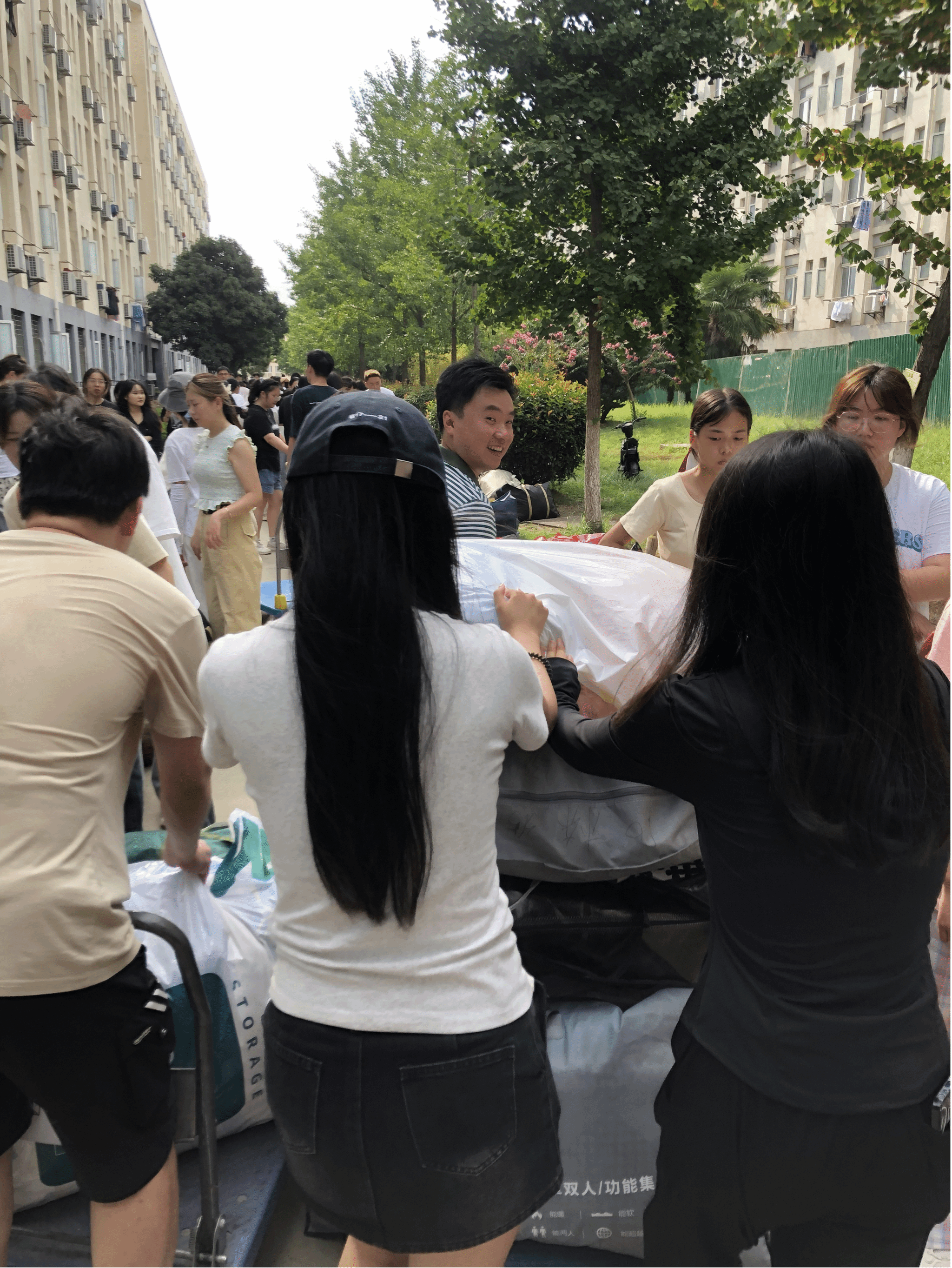 搬迁方案下发后,辅导员召开线上会议进行动员和引导,针对宿舍分配、搬迁时间、搬迁车辆、物品整理打包等具体事宜进行安排,同时提醒同学们返校途中要注意交通安全、提高防盗防骗意识。搬迁当天,副经理周端明、公司领导班子成员、全体辅导员、党员教师分别在锦绣、滨湖两校区进行现场组织、指挥、协调,身先士卒,帮助同学搬运行李。