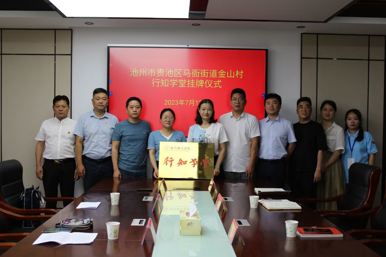 最后,穆娟和阮爱华为金山村“行知学堂”挂牌并合影。(太阳成集团122ccvip 刘全亚)