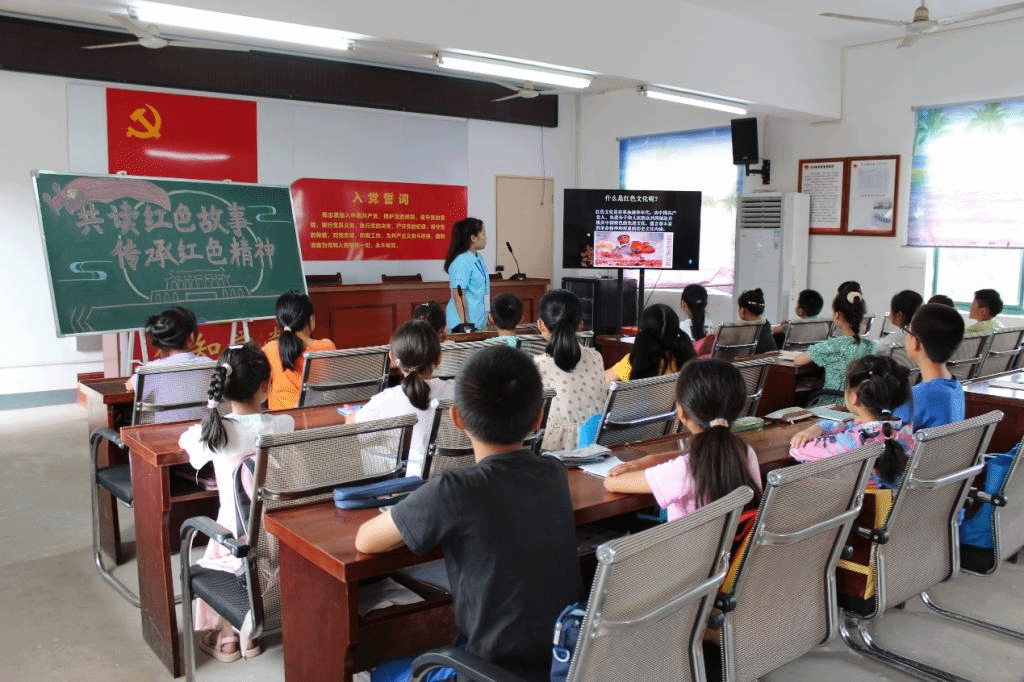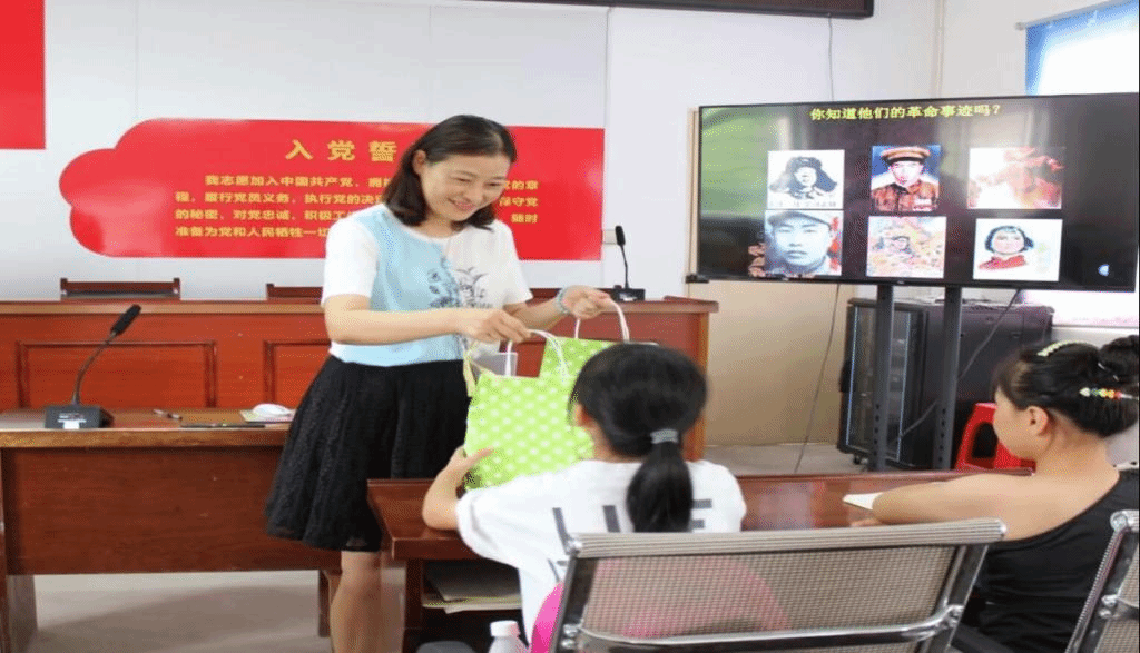 穆娟一行人到达金山行知学堂后,观摩了“小先生”高方圆以“共读红色故事,传承红色精神”为主题的红色教育课;课间,大家为小学员们发放了学习慰问品,鼓励小学员们要好好学习,同时也要学得开心,健康成长。穆娟鼓励“小先生”们结合自己的专业特点和自身特长,设计好课程内容,为小学员们提供更加丰富的教学内容,践行“爱满天下,知行合一”的校训精神,更好地服务家乡。