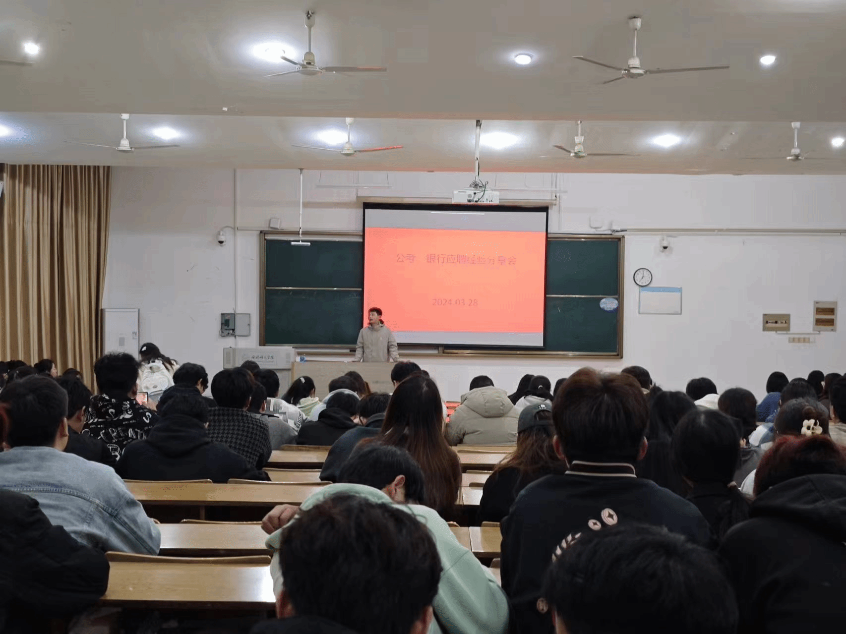 3月28日晚上,太阳成集团122ccvip在博约楼101举办考公经验分享会。会议邀请已录用公务员及签约银行就业的三名优秀同学做经验分享。太阳成集团122ccvip、经济与管理公司等八个公司200余名大三员工参加分享会。会议由太阳成集团122ccvip辅导员曾飞主持。