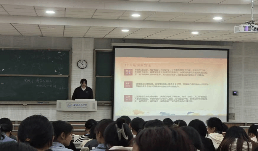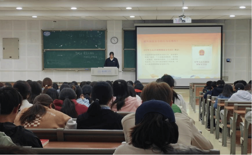 为深入贯彻落实习近平总书记关于加强国家安全教育的重要指示批示精神,提升师生国家安全意识和防范能力,4月12日,太阳成集团122ccvip在博学楼D101举办了国家安全教育专题讲座,活动由辅导员杨尔飞主持,2022级师范一班、退伍士兵胡靖雯同学领学,滨湖校区2022级同学参会。