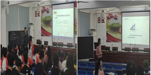 随后,由肥西县上派初级中学数学教师、卫德彬初中数学名师工作室成员、合肥市青年教师教学技能比赛一等奖获得者刘清清老师进行无生上课、说课《正切》。刘老师通过生活实例——桥的建造引入,抽象出其中蕴含的数学问题,形成正切的概念。运用深厚的文学功底和优美的语言向实习生们展示了一节精彩的无生上课和完整的说课流程,令实习生们收获颇丰。