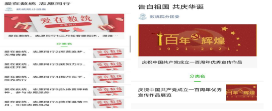 此次活动月系列活动围绕思想引领、志愿服务、典型示范宣讲、文化认同以及法治维权等五个方面开展了系列活动,通过分团委公众号宣扬志愿服务员工的优秀事迹,以“青春告白祖国,共庆百年华诞”为主题制作了视频、征文、书法、绘画等作品庆祝中国共产党成立100周年。