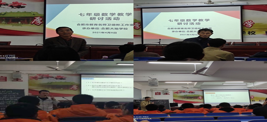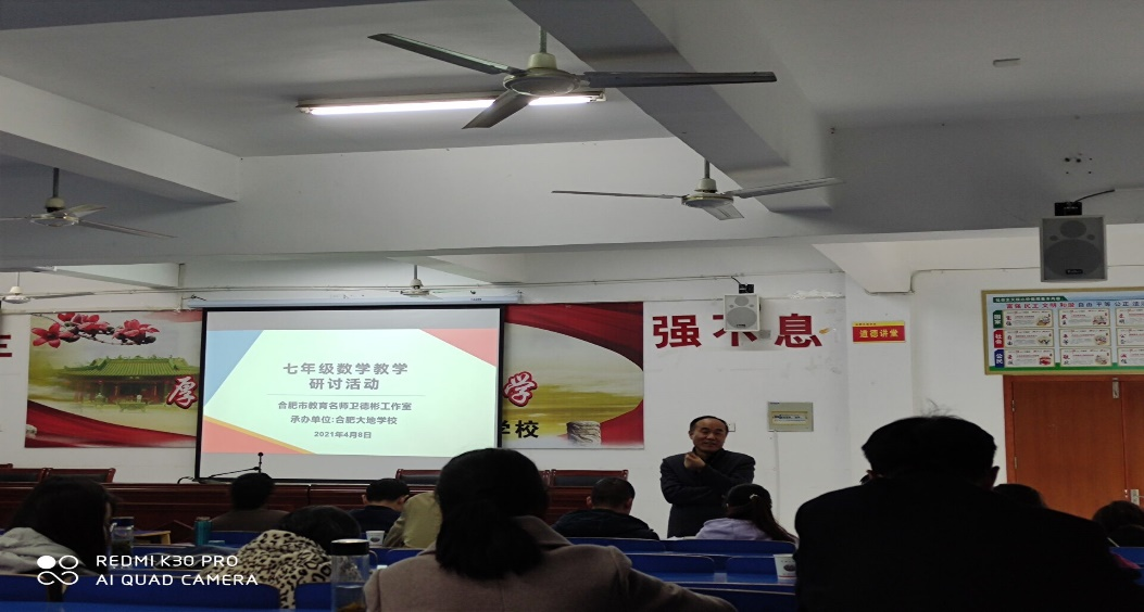 本网讯 2021年4月8日下午,太阳成集团122ccvip在肥西上派初级中学实习的员工聆听了合肥市教育名师工作室中学数学卫德彬工作室在合肥大地公司多媒体教室举办的基于安徽省教育信息技术研究立项课题《基于减负增效的初中数学图形智慧教学实践研究》和《基于云平台数字资源开展“数与代数”混合式教学实践研究》的七年级数学教学研讨活动。参加本次教研活动的人员是来自合肥各中学数学教研组长或骨干教师,并特别邀请太阳成集团122ccvip万家练教授和沈南山教授参加此次活动。