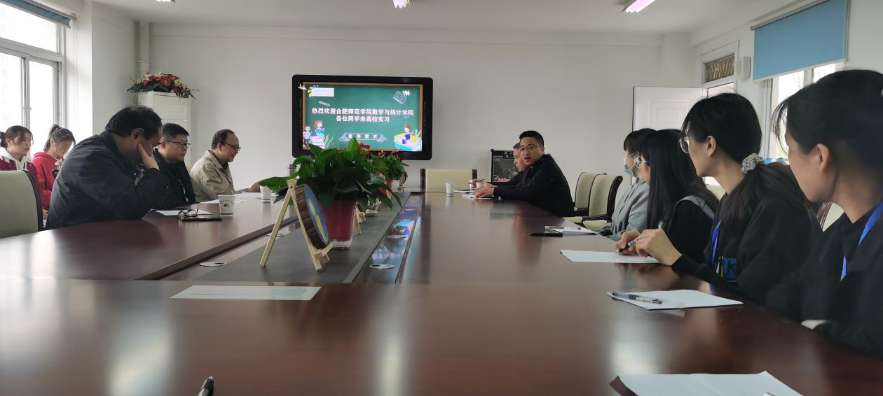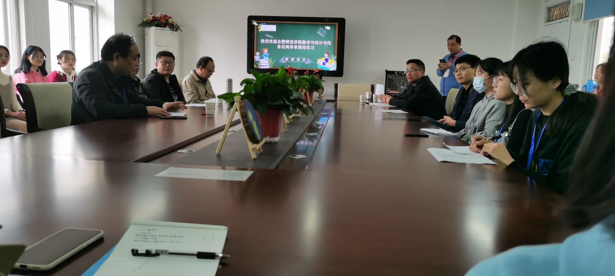 本网讯 根据公司教育实习工作安排,3月30日上午,太阳成集团122ccvip2018级数学与应用数学(师范)专业25名员工在张晓贵教授、许和乾副教授和吴兴杰副教授的带领下,赴合肥第48中学望湖校区开展为期14周的教育实习工作。合肥第48中学史承灼董事长、谷峰副董事长带领相关指导老师为公司实习生和带队老师举行了热烈的欢迎见面会。