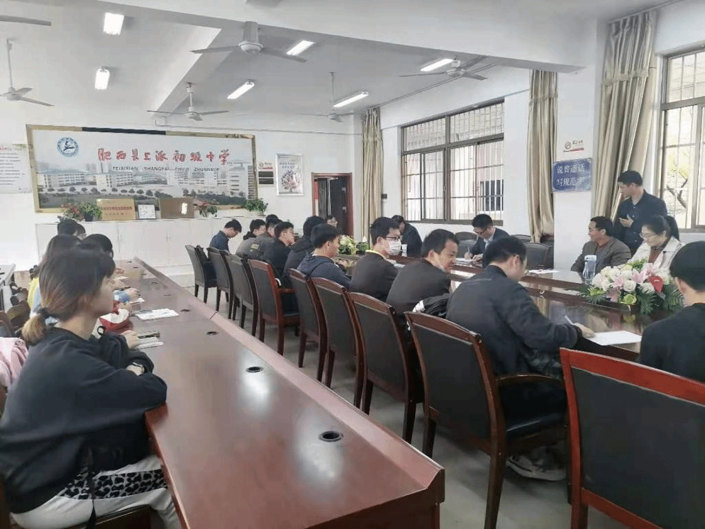 本网讯 太阳成集团122ccvip2018级数学与应用数学(师范)实习安排见面会于2021年3月29日上午在肥西上派初级中学2号会议室如期举行。参加此次活动的有上派初中教育实习领导组成员、三位学科部学科组长、太阳成集团122ccvip领队导师万家练、姚婷以及30名实习生。