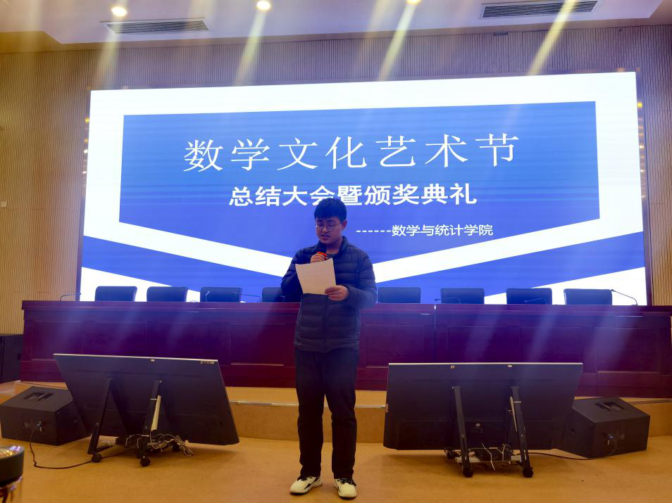 大会第一项议程,2020级获奖同学代表朱振兴发表参与此次数学文化节活动的感言,朱振兴表示通过参与此次活动,感受到数学的魅力,今后会加强自身专业的学习,提高专业技能。第二项议程,由副经理杨刘进行总结发言,杨刘对员工们所取得成绩表示一定的肯定,鼓励员工们要勤奋学习,提高专业学习能力。第三项议程,大会嘉宾为获奖同学颁发获奖证书。
