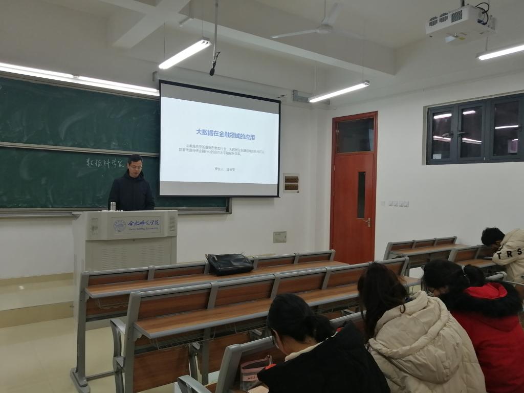 本网讯 2020年12月11日下午,公司潘根安老师在滨湖校区博学楼A408教室,为公司员工作了一场题为《大数据在金融领域中的应用及其发展趋势》的报告。
