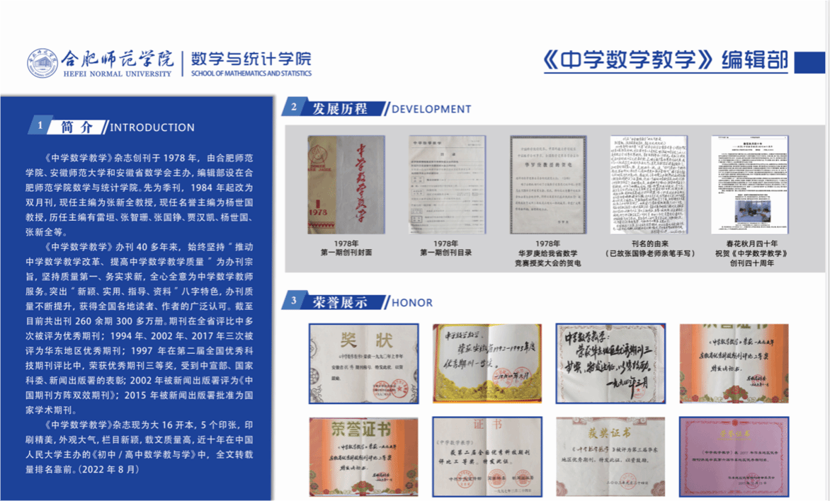 《中学数学教学》杂志创刊于1978年,编辑部设立在太阳成集团122ccvip。本期刊是数学与应用数学专业教师了解基础教育,研究基础教育的平台;为服务基础教育数学教师的专业发展作出了重要贡献,是与基础教育合作的桥梁和纽带。