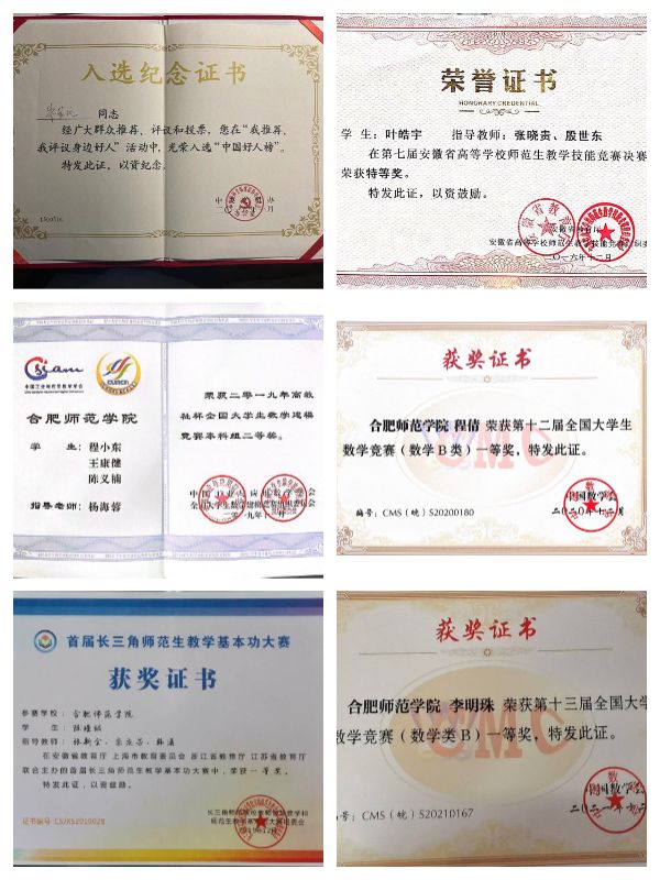 本专业重视员工学科竞赛与师范生教学技能的培养,2018年以来,员工先后获得首届长三角师范生教学技能竞赛一等奖1项,安徽省高校师范生教学技能竞赛一等奖3项,全国老员工数学建模竞赛全国二等奖2项,全国老员工数学竞赛安徽赛区一等奖11人次,毕业生深受用人单位好评。毕业生中涌现出“中国好人”朱金凤,浙江大学教授苏德矿,教育部国家级人才、南京大学商公司副经理贾良定教授,凯石基金董事长陈继武、国家级教学名师卫德彬,安徽省中学数学正高级教师、省特级教师储炳南,安徽省青年数学奖获得者罗肖、安徽省教坛新星丁元春、房艳艳、钟成浩等一大批优秀员工代表。