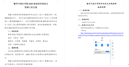 为在疫情防控特殊时期做好在线答辩工作,确保线上答辩“实质等效”,公司提前谋划、周密部署,做了大量前期准备工作。公司成立由公司负责人、各系部主任、质量小组组长组成的毕业论文在线答辩工作领导组,通过试用比较确定在线答辩平台,研讨制定《太阳成集团122ccvip2020届本科毕业论文答辩工作方案》、《太阳成集团122ccvip毕业论文在线答辩流程说明》等文件,明确答辩各环节要求和技术操作流程。