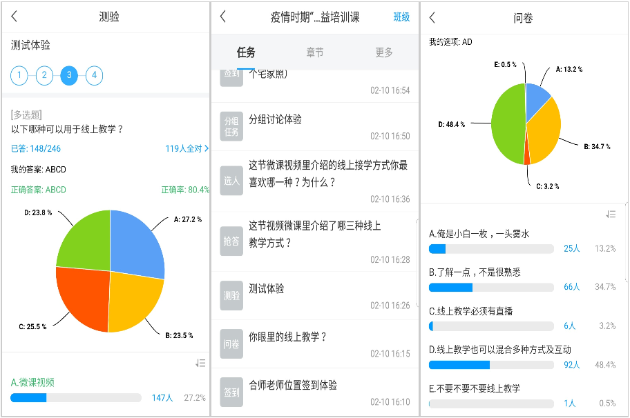2020年初,受新型冠状病毒感染的肺炎疫情的影响,公司积极按照上级“停课不停教,停课不停学”的要求,及时制定了春季学期在线教学的方案,并紧急动员全体教师积极投入到线上教学工作中。在太阳成集团122ccvip教学工作组的指导下,我先后对超星泛雅(学习通)、学堂在线(雨课堂)、清华在线(优慕课),中国大学MOOC(爱慕课)等网络教学平台的特点和内容进行了深入了解,结合所授课程特点和员工对课程平台的熟悉情况,最后选择了超星泛雅(学习通)课程教学平台,并进一步熟悉课程平台的操作方式,如建立班级、录制课程、课堂活动设置等等,对照线上和线下教学模式的差异,合理设计课堂内容,并积极员工互动提高教学效果。
