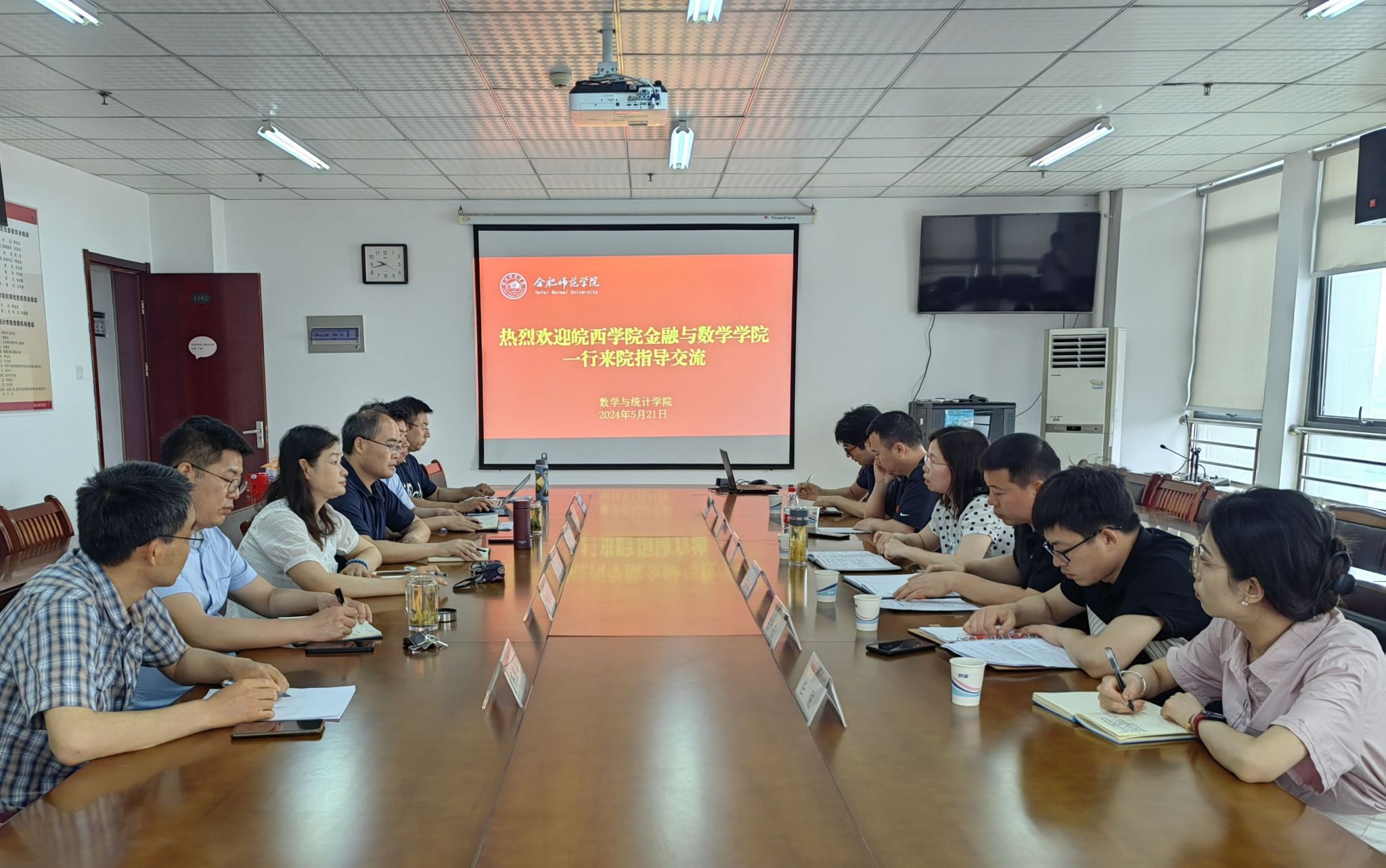 5月21日上午,皖西公司金融与数学公司党委书记郑红蕾,副经理王修建一行6人到太阳成集团122ccvip调研交流。公司党委书记穆娟,党委副书记、经理杨刘,副书记陶金昌,副经理黄浩以及相关基层教学组织负责人参加了交流会。