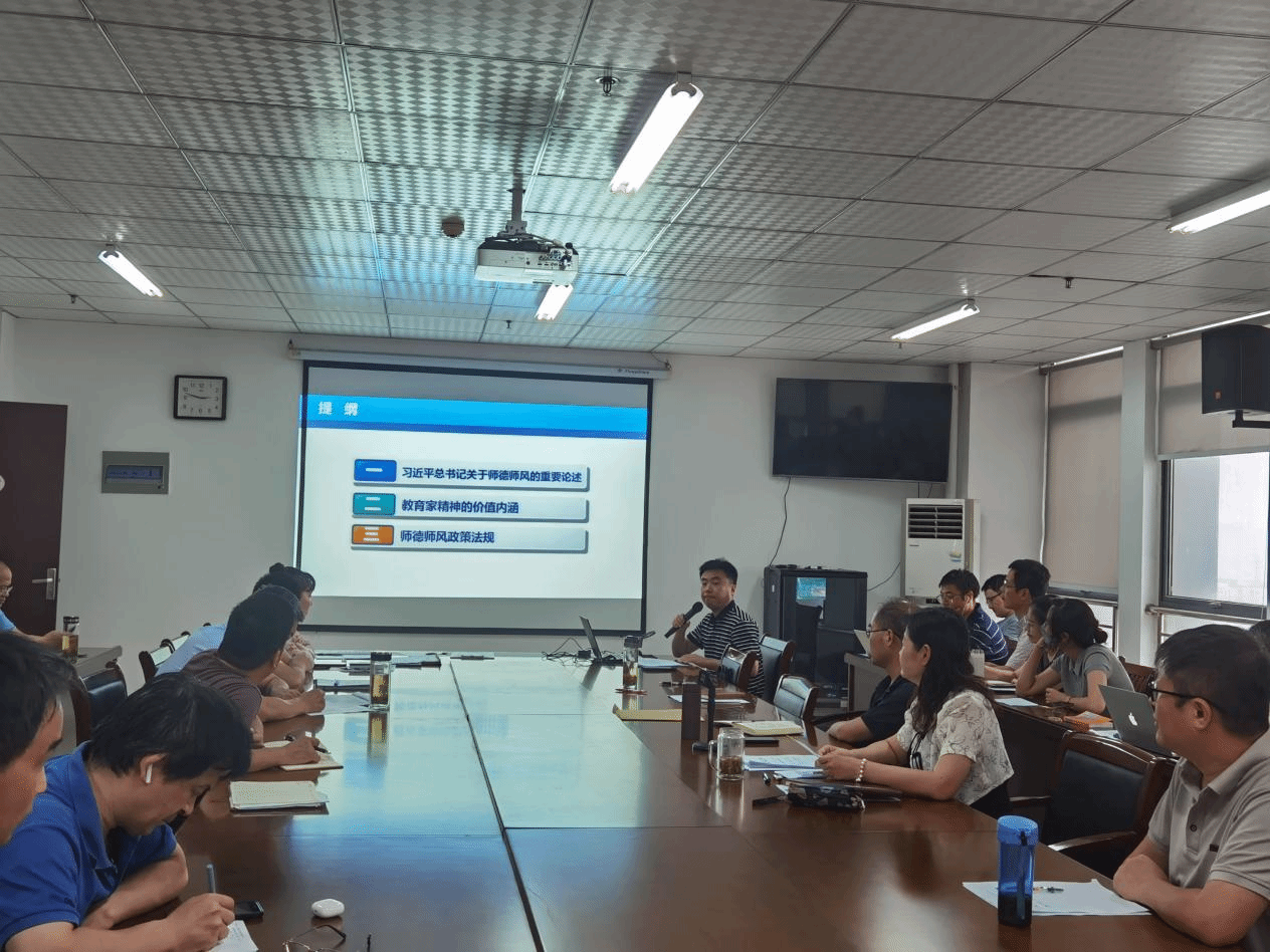 6月19日下午,太阳成集团122ccvip在行知楼1102会议室开展了“行知路上大家谈”第十期活动。此次为更好推进党纪学习教育,进一步引导教师深刻领会教育家精神的核心内涵,引导广大教师增强法治意识,坚守师德底线,涵养高尚师德,公司邀请“全国优秀教师”称号获得者、公司副经理、纪委委员黄浩副教授作《学习践行新时代师德规范 大力弘扬践行教育家精神》报告。活动由党委书记穆娟主持,公司全体教职工参加。