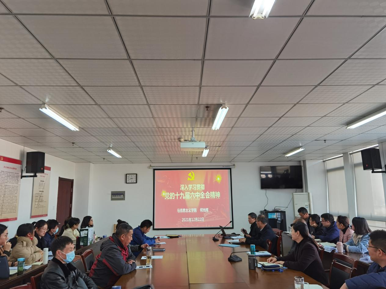 本网讯 12月22日下午,公司党委在行知楼1102会议室组织召开了深入学习贯彻党的十九届六中全会精神宣讲报告会。宣讲报告会由公司党委书记郑支农主持,邀请了马克思主义公司何光辉教授来院进行宣讲,公司全体教职工参加了本次宣讲报告会。
