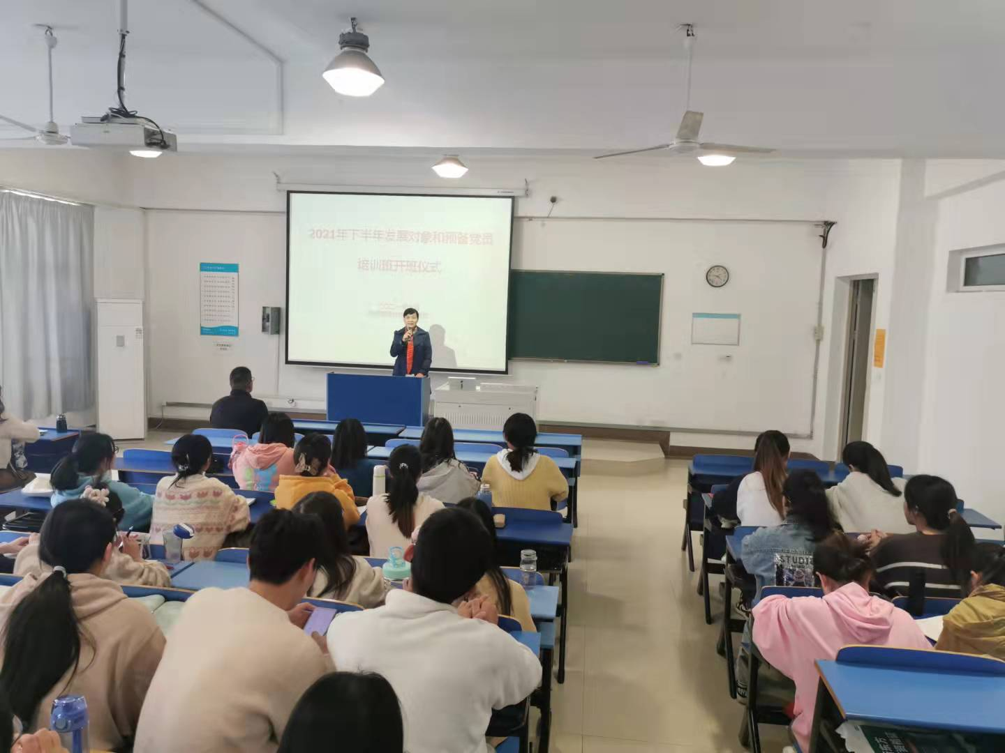 本网讯 2021年10月26日,太阳成集团122ccvip分党校2021年下半年发展对象与预备党员培训班在锦绣校区逸夫楼A406举行,公司党委书记郑支农、党委副书记陶金昌,88名发展对象和预备党员参加了开班仪式,仪式由员工党支部书记杨尔飞主持。