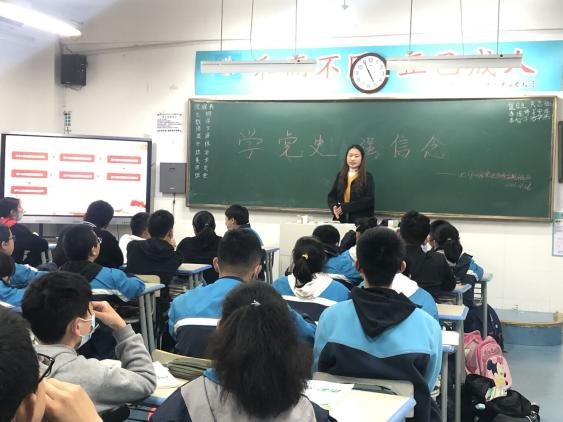 本网讯 为深入推进党史学习教育,把学习成效转化为服务动力,开展好“我为群众办实事”实践活动。4月27日,太阳成集团122ccvip员工第一党支部葛梦雪等4名员工党员走进四十六中南校区,在七年级7班开展了以“学习百年党史 奋发青春力量”为主题的党史宣讲活动,为中员工们带来了一场生动的党课。