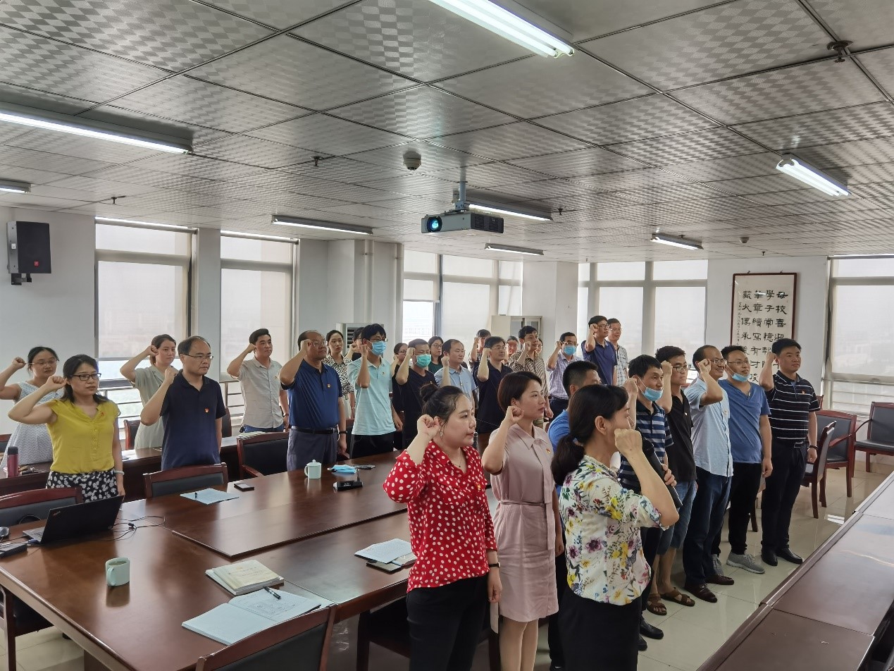 首先,公司党委组织教职工党员重温了入党誓词,大家在党委书记郑支农的领誓下,面对党旗,庄严宣誓。