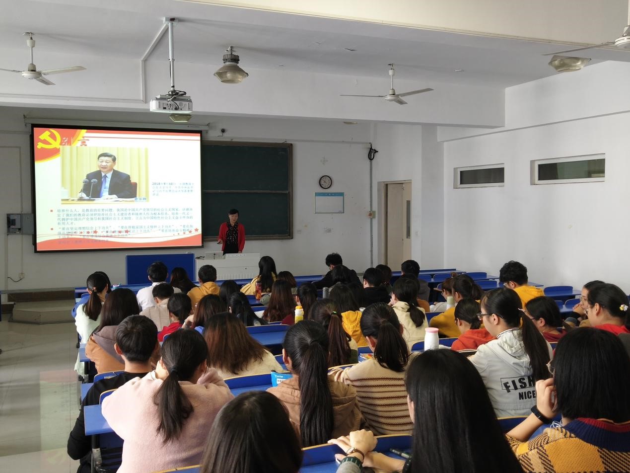 本网讯 10月29日中午,公司党总支在逸夫楼A303于预备党员和发展对象培训班中,开展了“不忘初心、牢记使命”主题教育专题党课,本次党课由员工党支部书记王志主持,党总支书记郑支农主讲,全体预备党员和发展对象参会。
