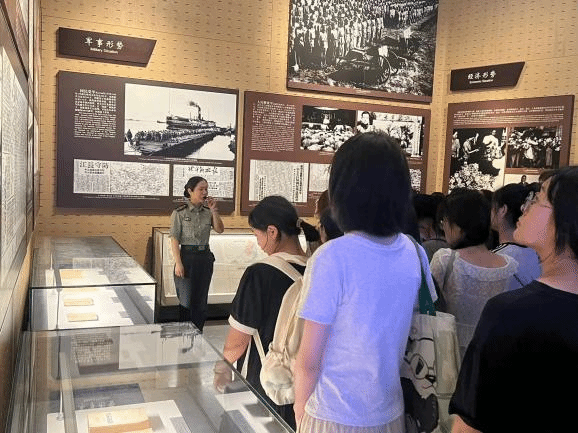 随后,团队跟随讲解员分别进入“战役准备”和“突破江防”等展厅。随着脚步向前迈进,陈旧的手枪、还原的木制帆船无不彰显出解放军扭转乾坤、不畏艰险渡过长江天堑的英勇豪情。