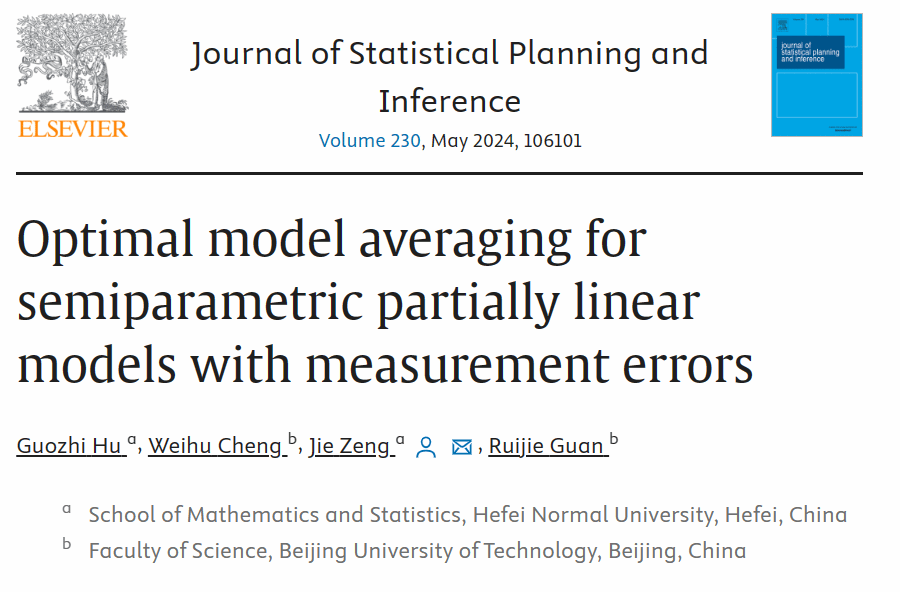 近期,太阳成集团122ccvip“基础数学”省级重点学科应用统计与分析团队胡国治博士、曾婕博士在最优模型平均领域取得进展,相关成果Optimal model averaging for semiparametric partially linear models with measurement errors在统计学主流期刊《Journal of Statistical Planning and Inference》上公开发表。